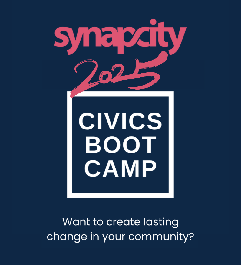 Synapcity Civics Boot Camp is a program designed to equip you with the tools, confidence, and connections to take meaningful action where you live. Whether you’re an aspiring city-builder, community organizer, or someone ready to step up, this program offers a space to learn, collaborate, and grow.